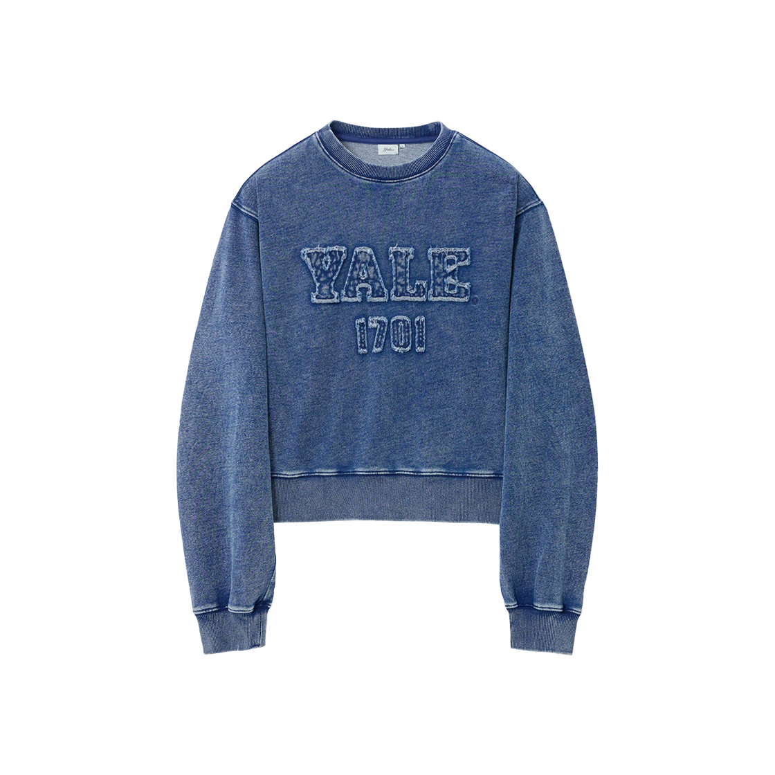 예일 우먼즈 피그먼트 아플리케 크롭 스웨트셔츠_네이비