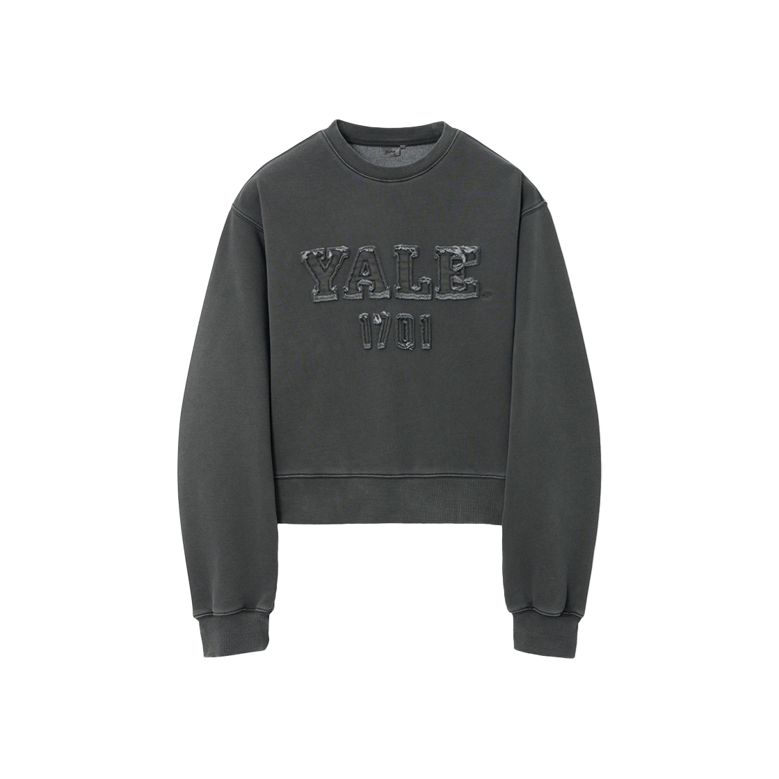 예일 우먼즈 피그먼트 아플리케 크롭 스웨트셔츠_차콜