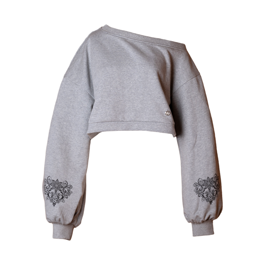 무센트 헤닝 오프 숄더 크롭 맨투맨 그레이