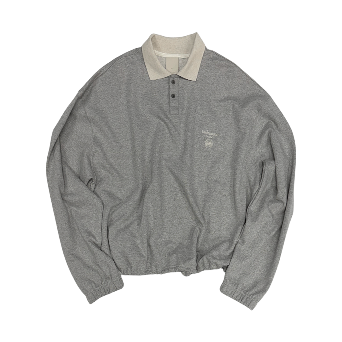 언더마이카 무.140 콤비 크롭 칼라 스웨트셔츠 멜란지 그레이