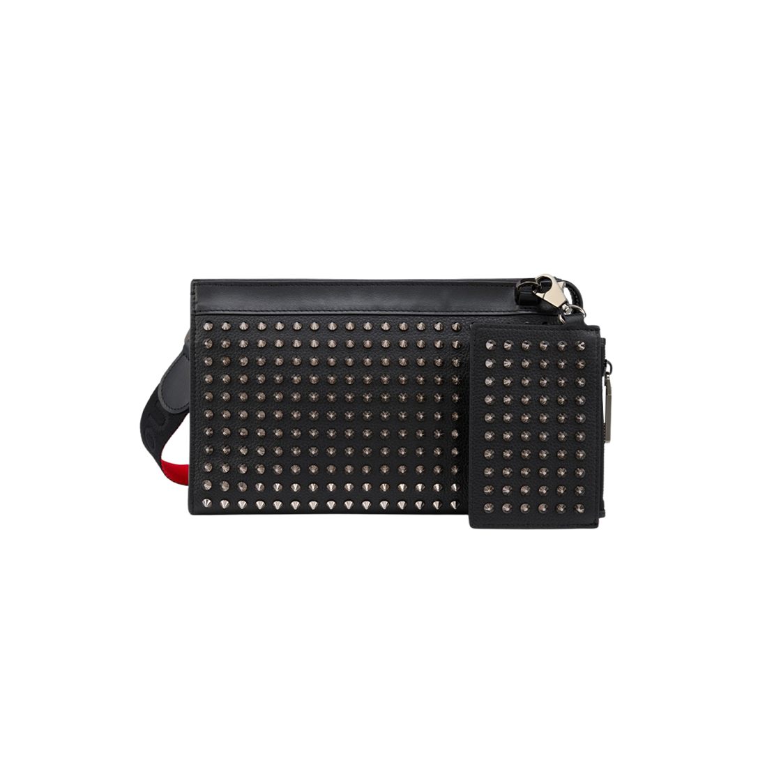 크리스찬 루부탱 펑키 그레인드 카프 레더 앤 스파이크 파우치 블랙