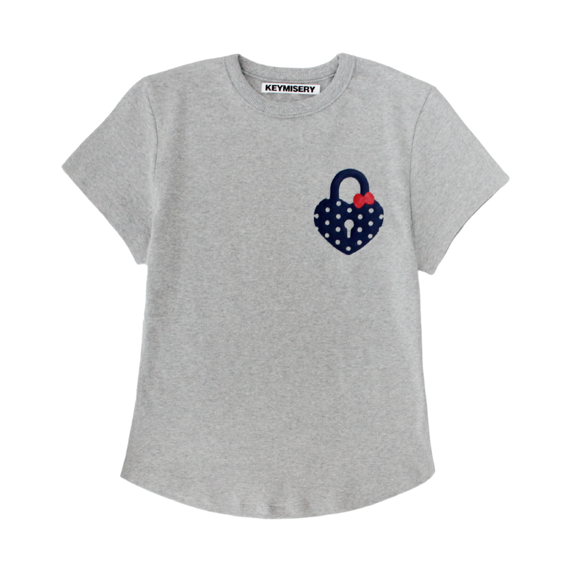 키미저리 하트락 도트 크롭 티셔츠 그레이