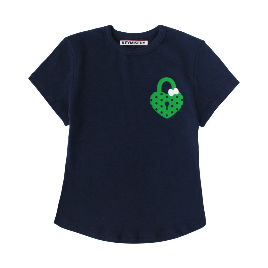키미저리 하트락 도트 크롭 티셔츠 네이비