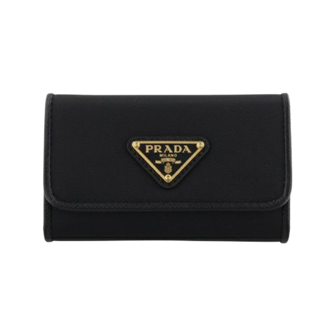 프라다 트라이앵글 로고 나일론 키 케이스 블랙