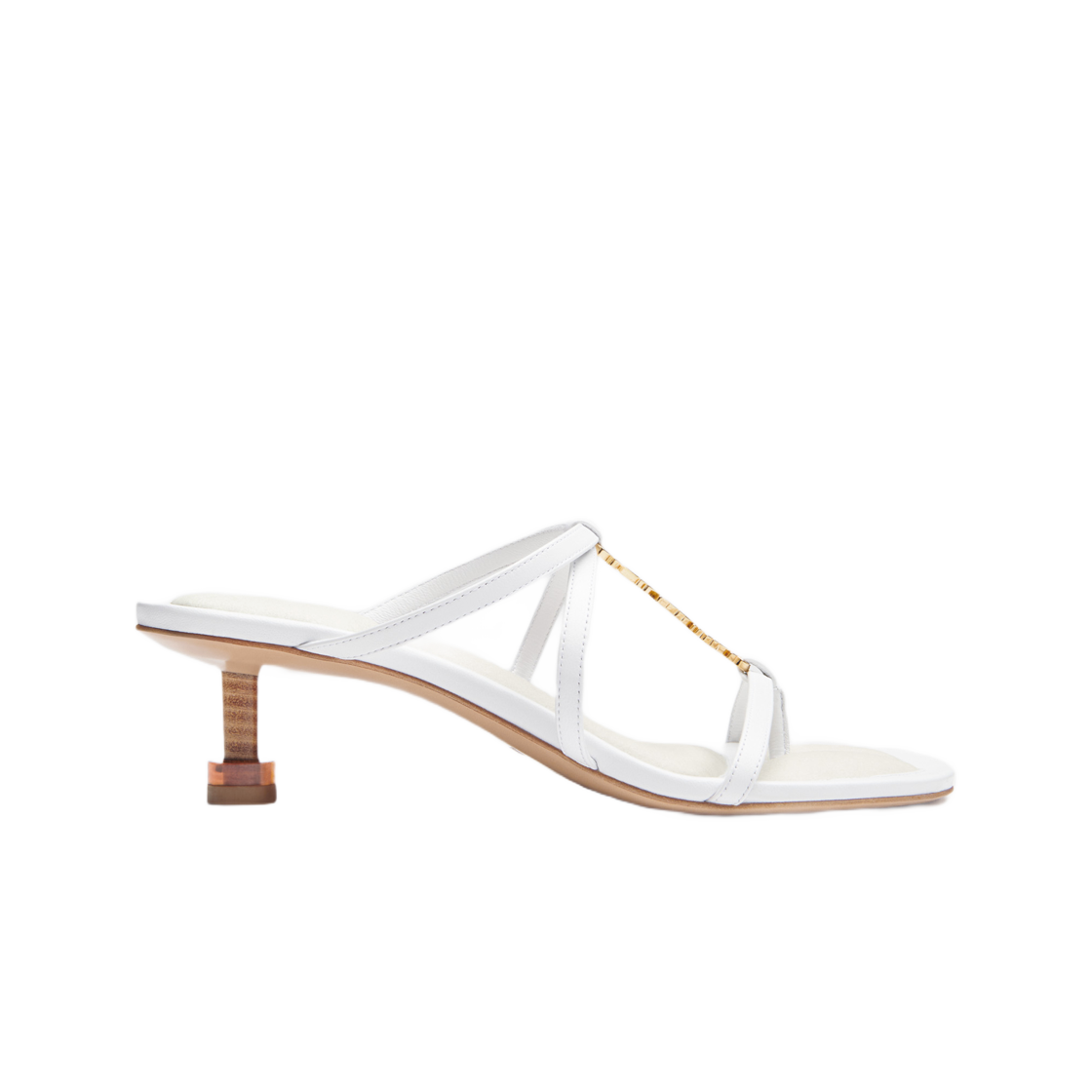(W) 자크뮈스 레 샌들 베이시스 프랄루 참 로고 키튼 힐 화이트