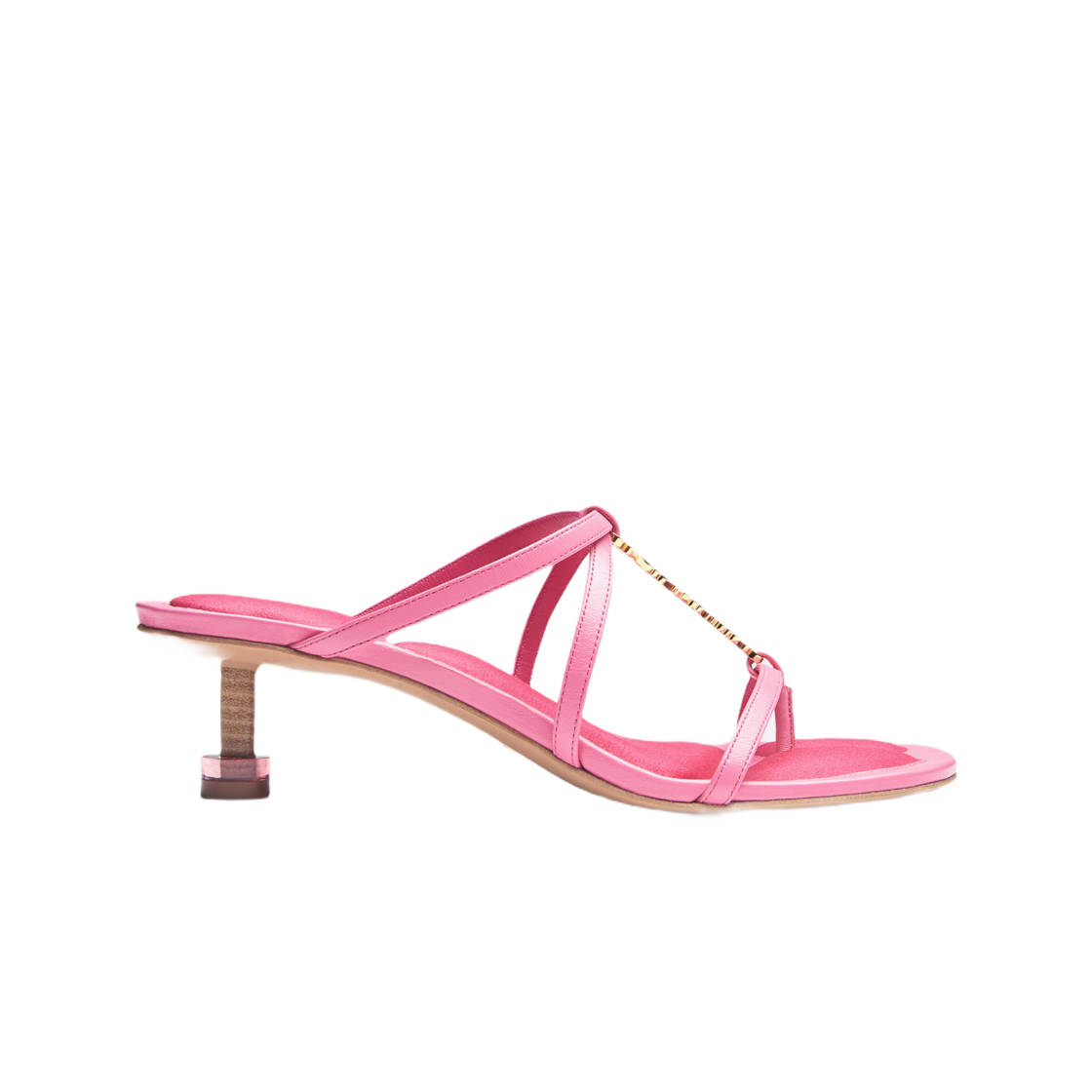 (W) 자크뮈스 레 샌들 베이시스 프랄루 참 로고 키튼 힐 핑크