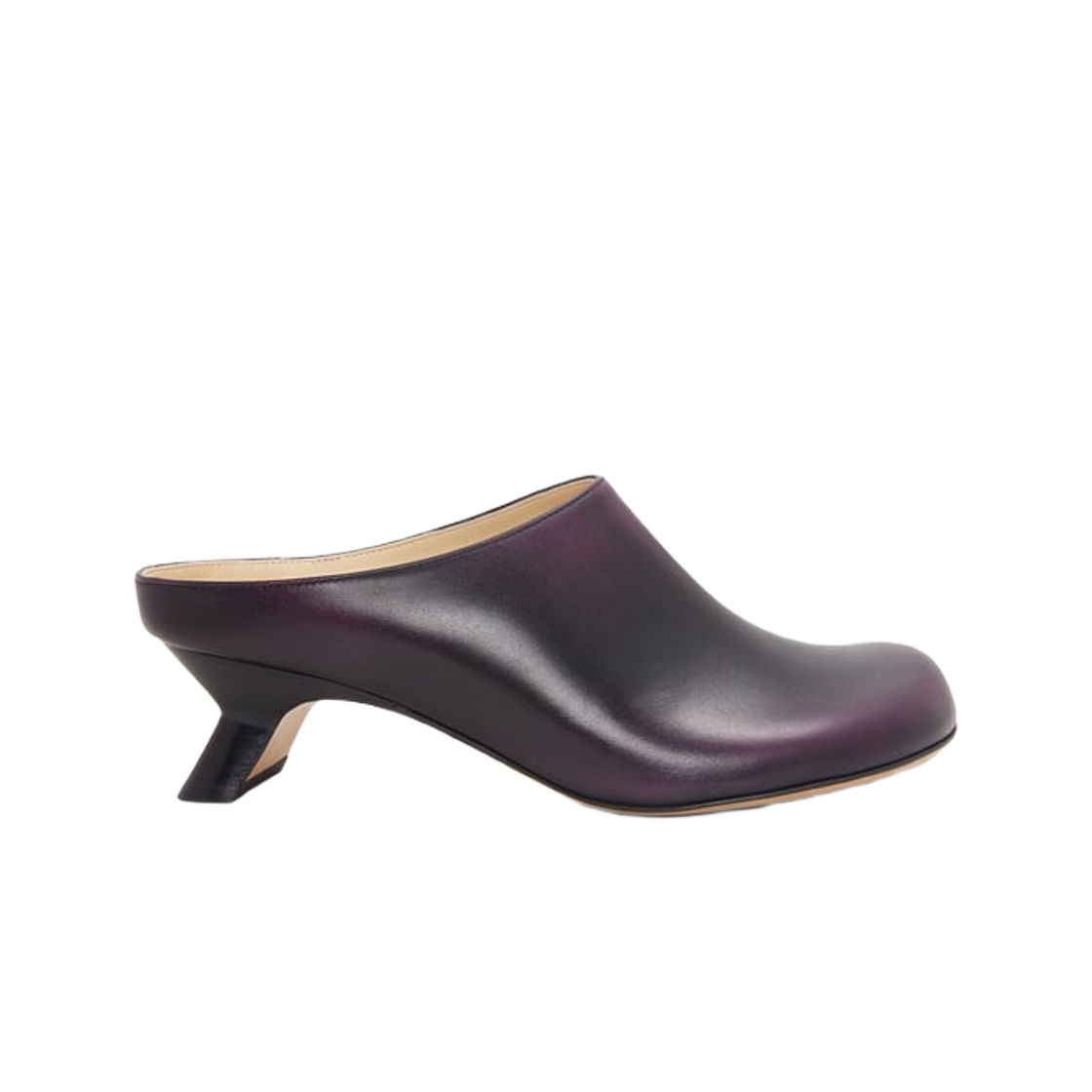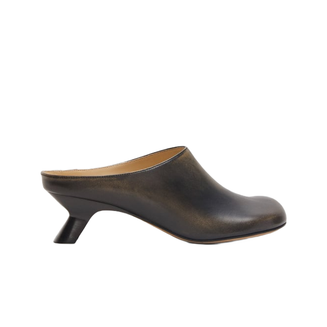 (W) 로에베 키튼 힐 뮬 인 바이컬러 브러쉬드 오프 카프스킨 미디움 컨실러 블랙