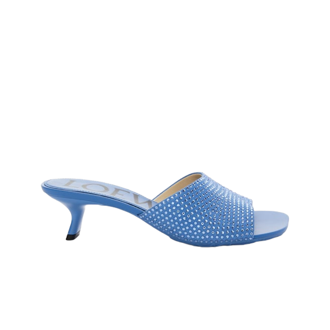 (W) 로에베 페탈 키튼 힐 슬라이드 인 스웨이드 앤 크리스탈 라이트 데님