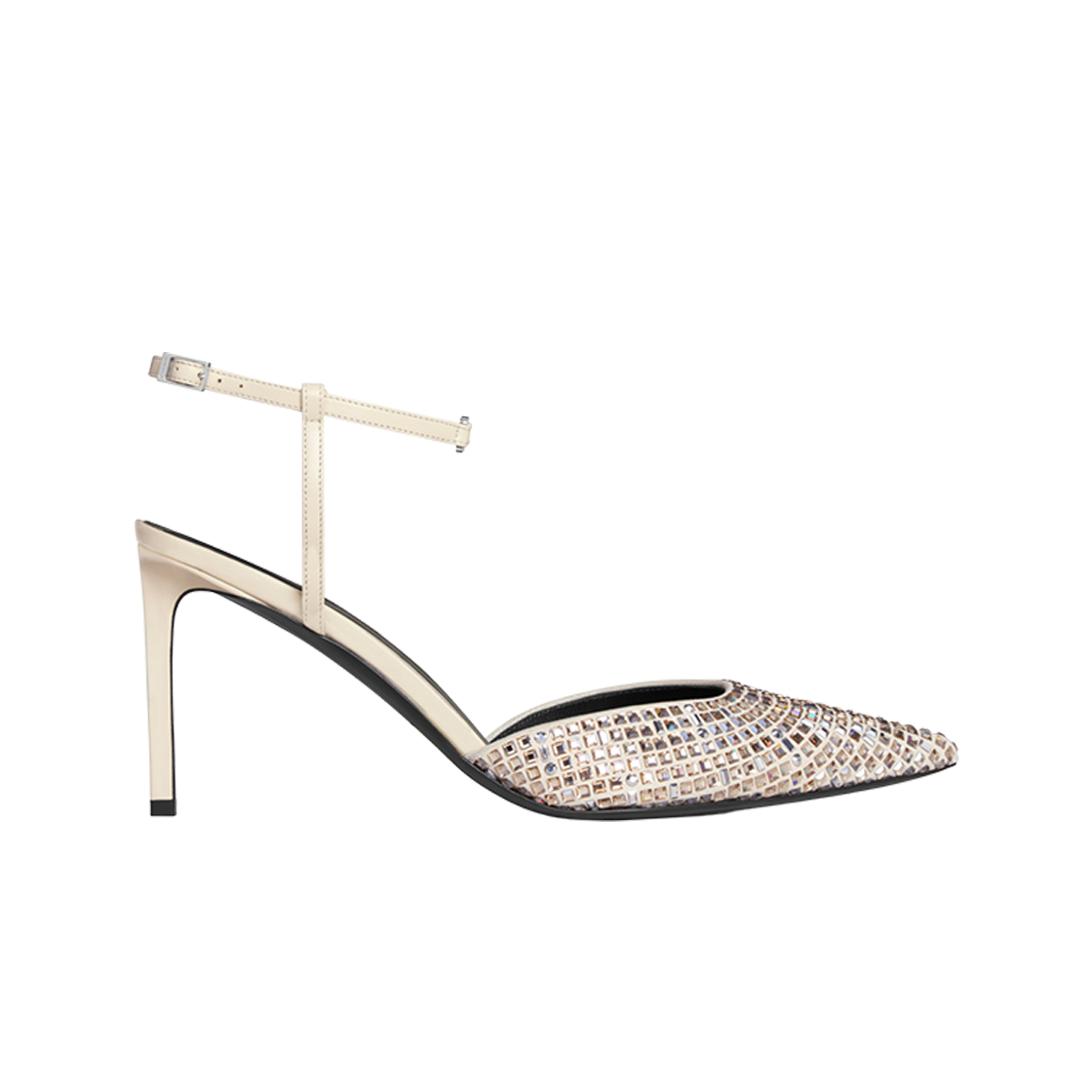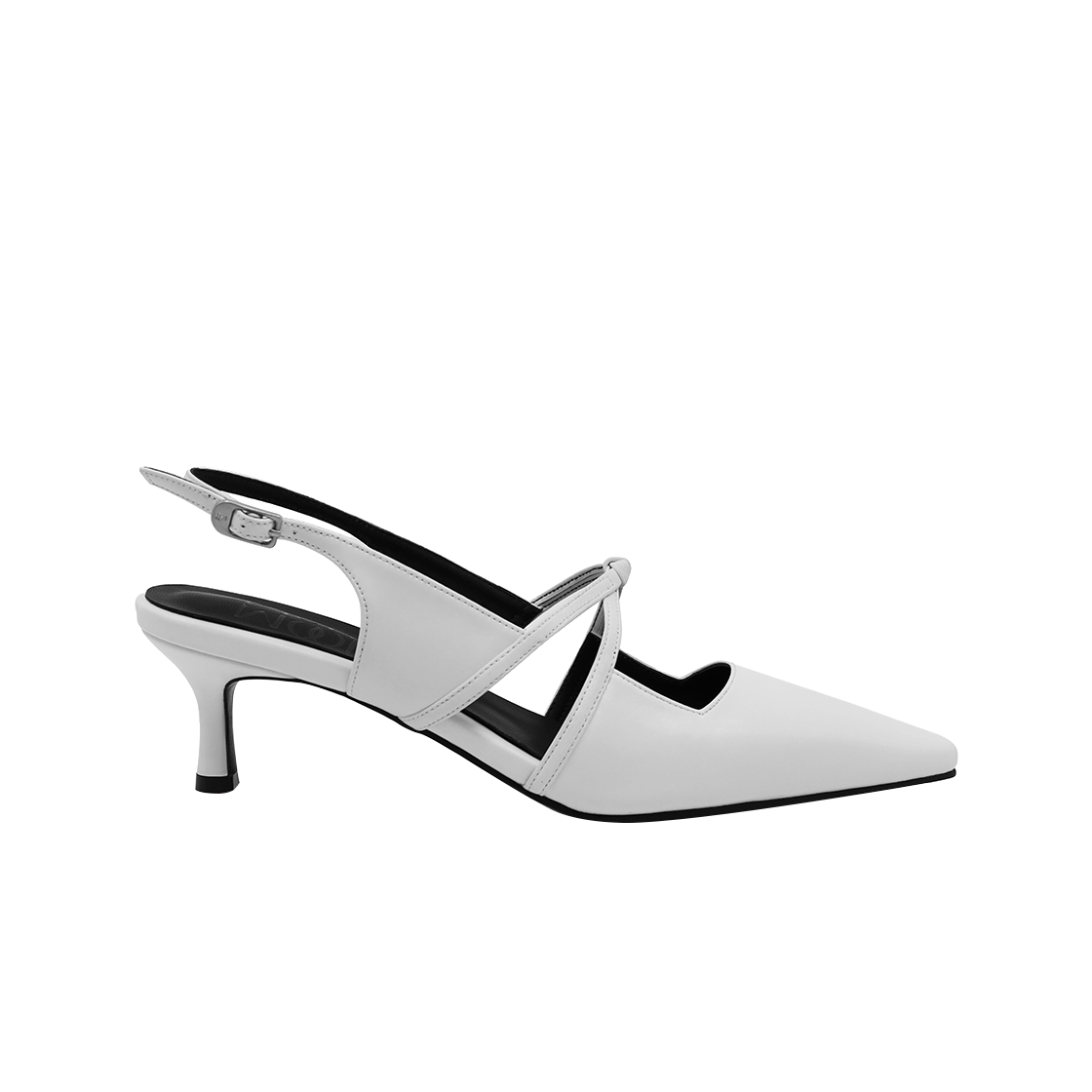 무드나잇 로지 크로스 슬링백 키튼 힐 화이트