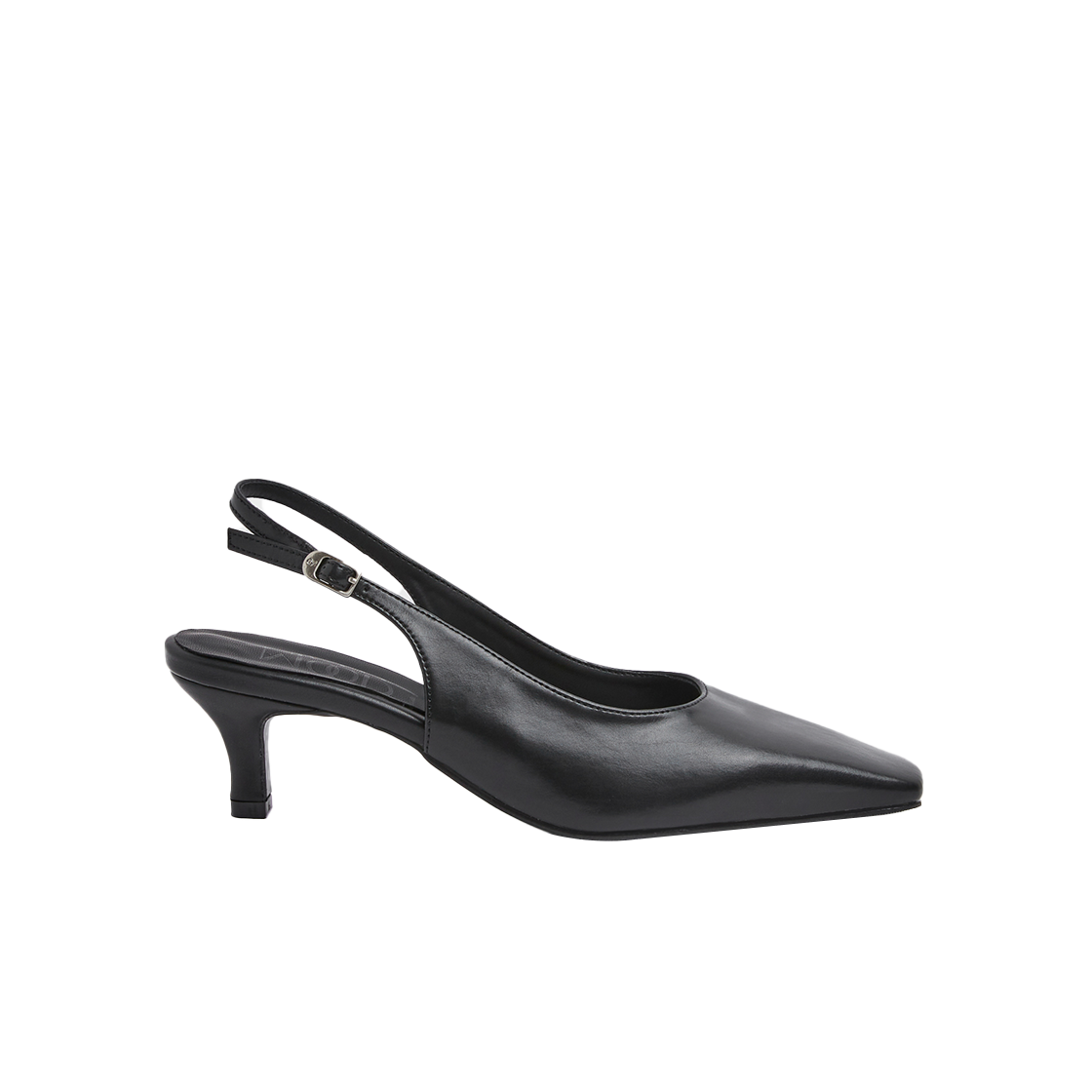 무드나잇 에리나 스퀘어 슬링백 키튼힐 l 레더블랙
