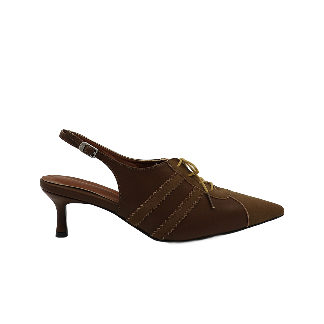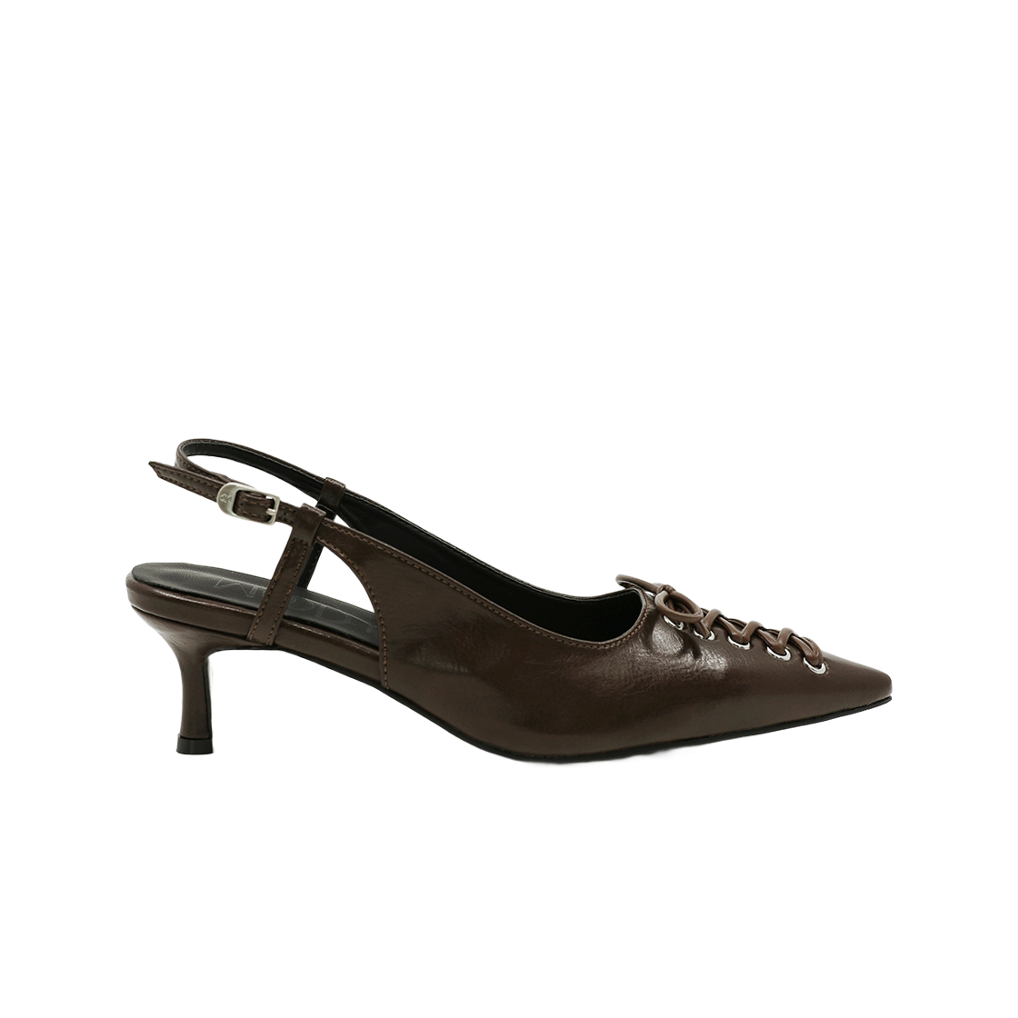 무드나잇 에리나 스퀘어 슬링백 키튼힐 l 다크브라운