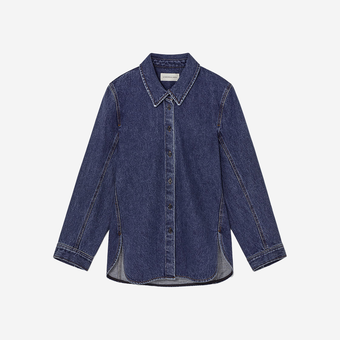 킨더살몬 우먼 데님 워시드 셔츠 블루