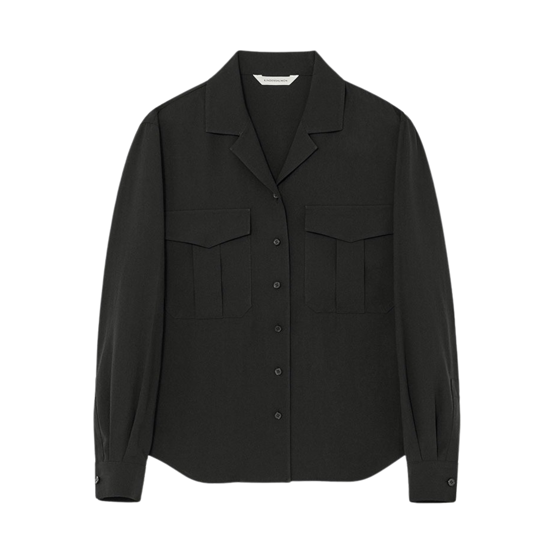 킨더살몬 우먼 리넨 카라 셔츠 블랙