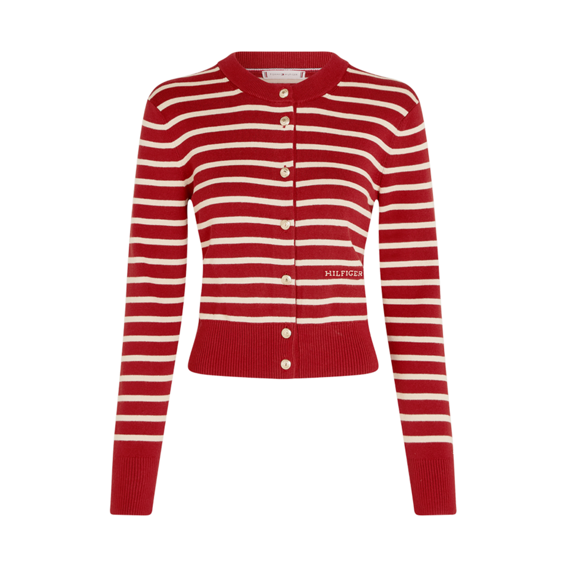 (W) 타미 힐피거 스트라이프 슬림 가디건 브레톤 스트라이프 다크 마그마 씨 아이보리