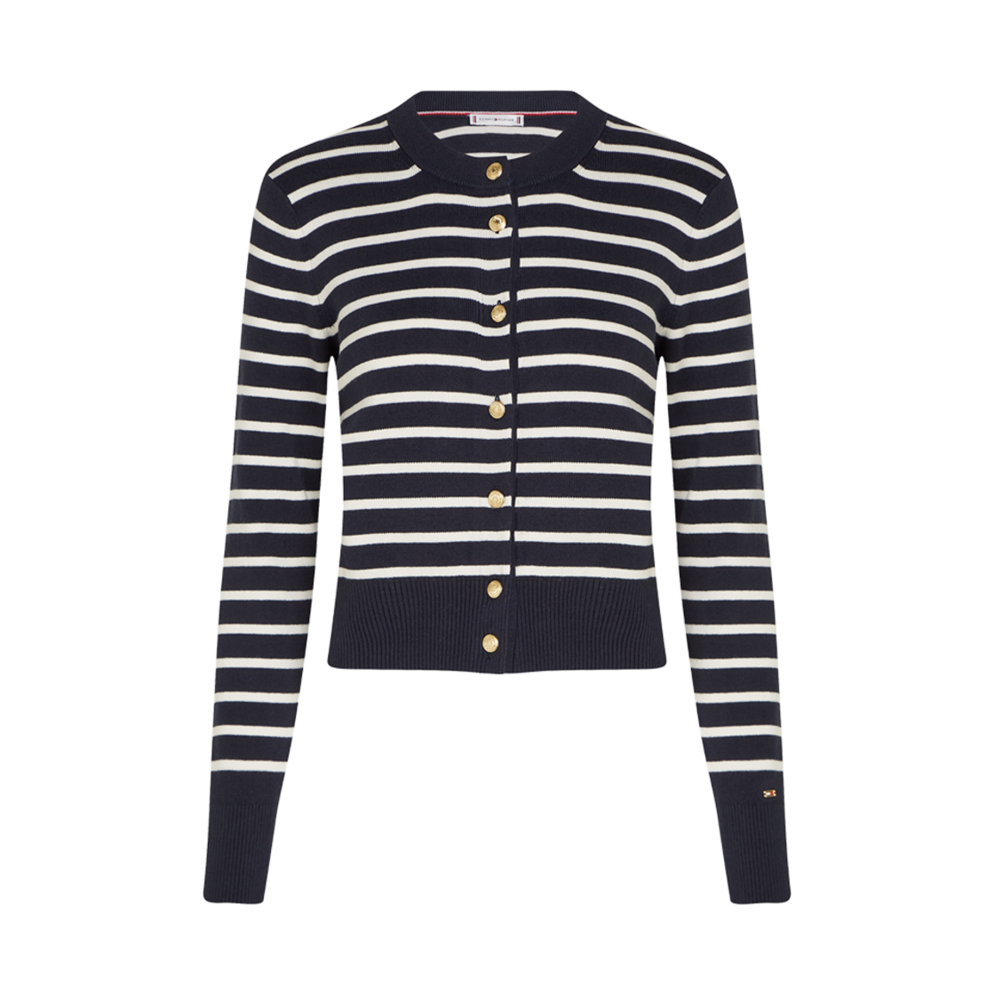 (W) 타미 힐피거 스트라이프 슬림 가디건 브레톤 스트라이프 아이보리 페탈 데저트 스카이