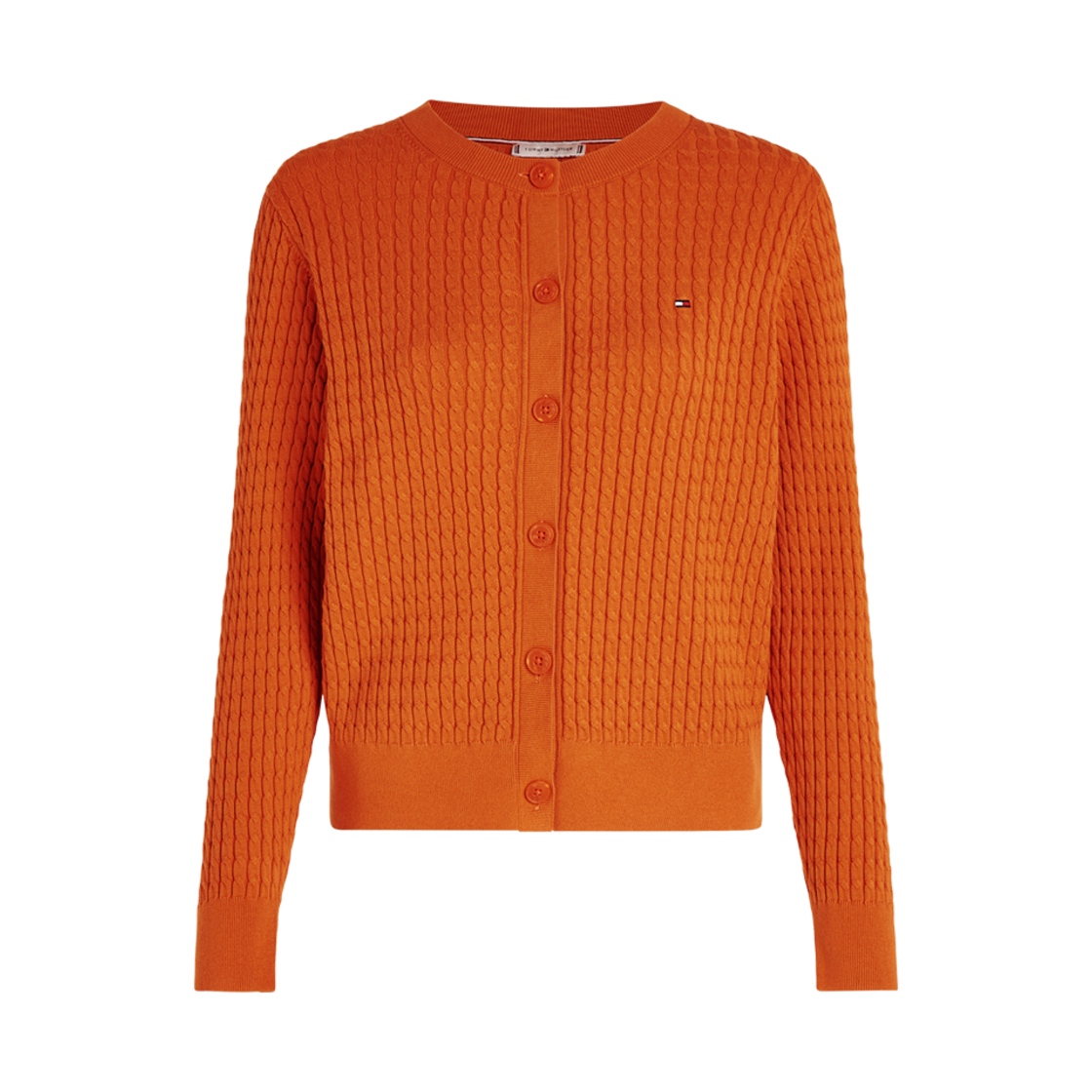 (W) 타미 힐피거 케이블 니트 라운드 넥 가디건 오텀 오렌지