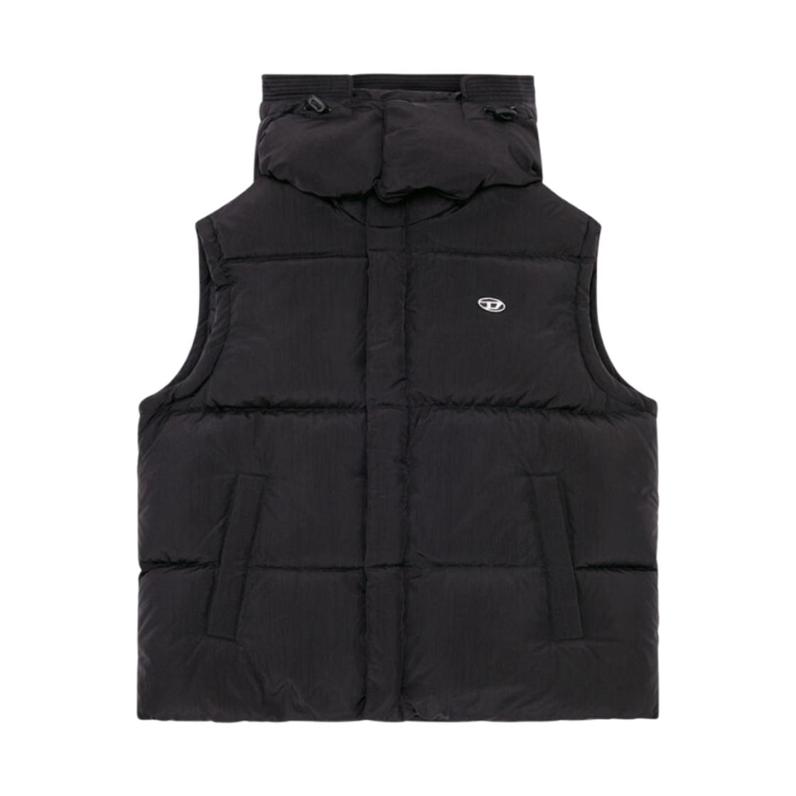 디젤 W-롤피스-Sl 리사이클 나일론 타슬란 다운 베스트 블랙