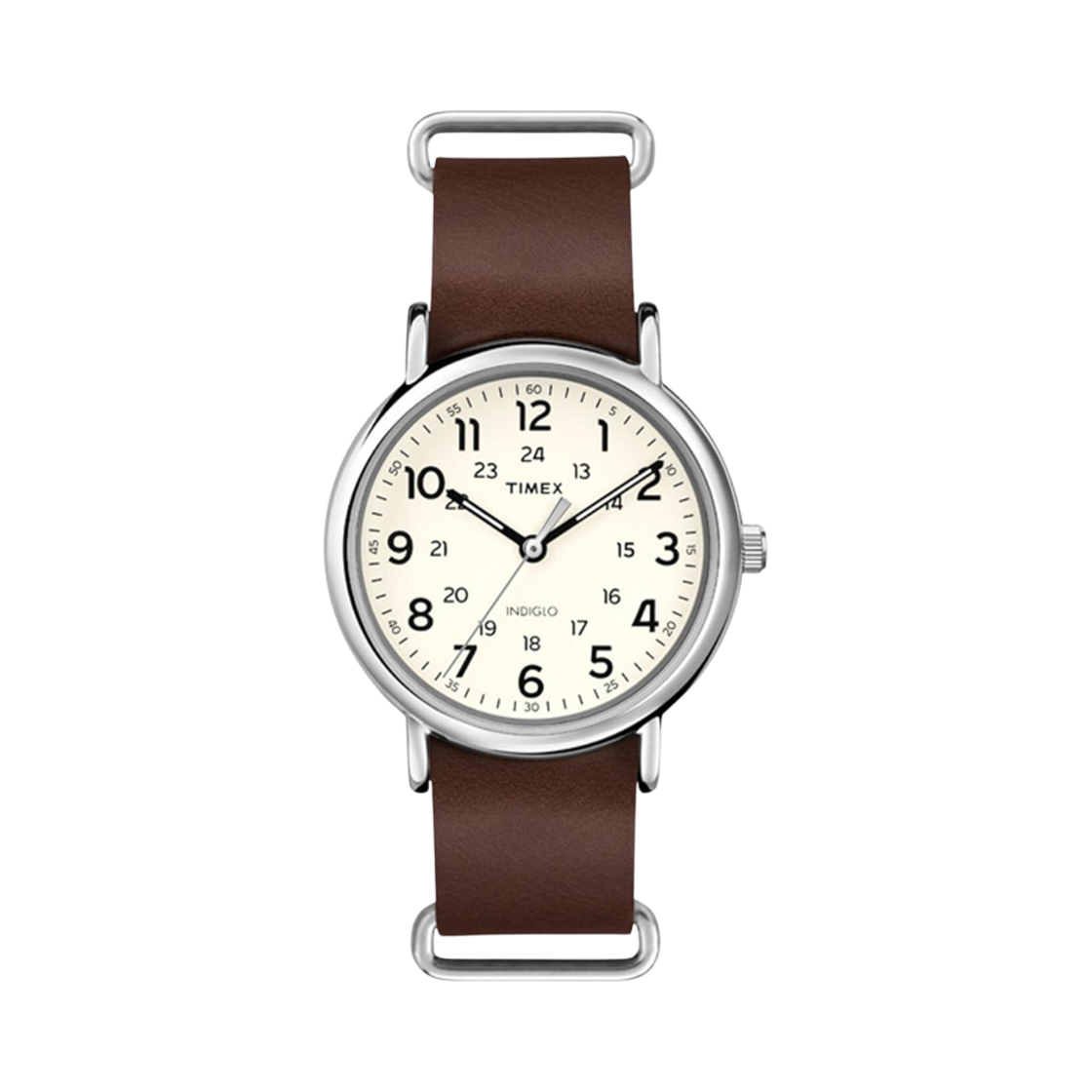 타이맥스 위켄더 37mm 레더 스트랩 워치 브라운 실버톤