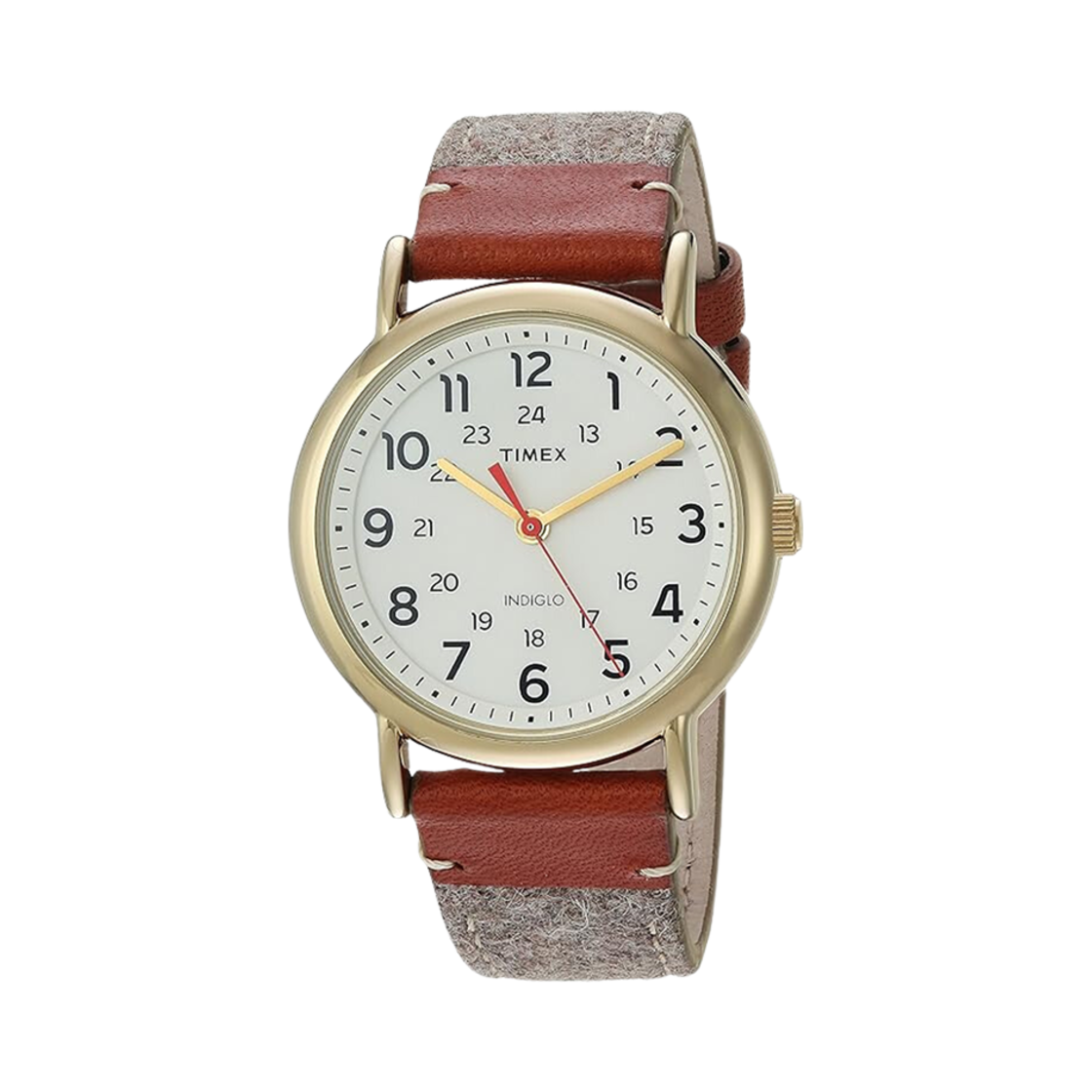 타이맥스 위켄더 38mm 패브릭 레더 스트랩 워치 탄 브라운