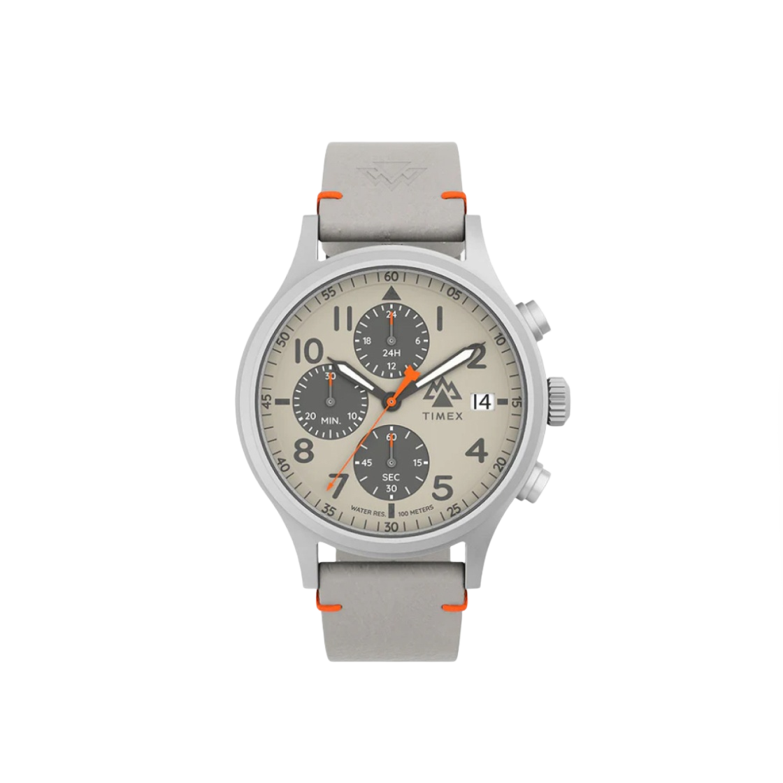 타이맥스 익스페디션 노스 시에라 크로노그래프 42mm 레더 스트랩 와치 그레이 실버톤