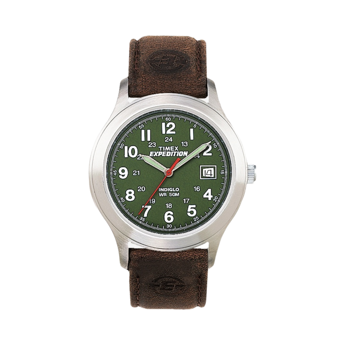 타이맥스 익스페디션 메탈 필드 39mm 레더 스트랩 워치 브라운 실버 톤 그린