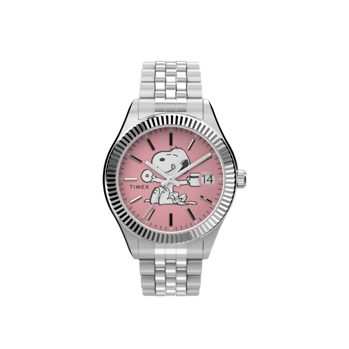 타이맥스 레거시 x 피너츠 34mm 스테인레스 스틸 브레이슬릿 와치 실버톤 핑크
