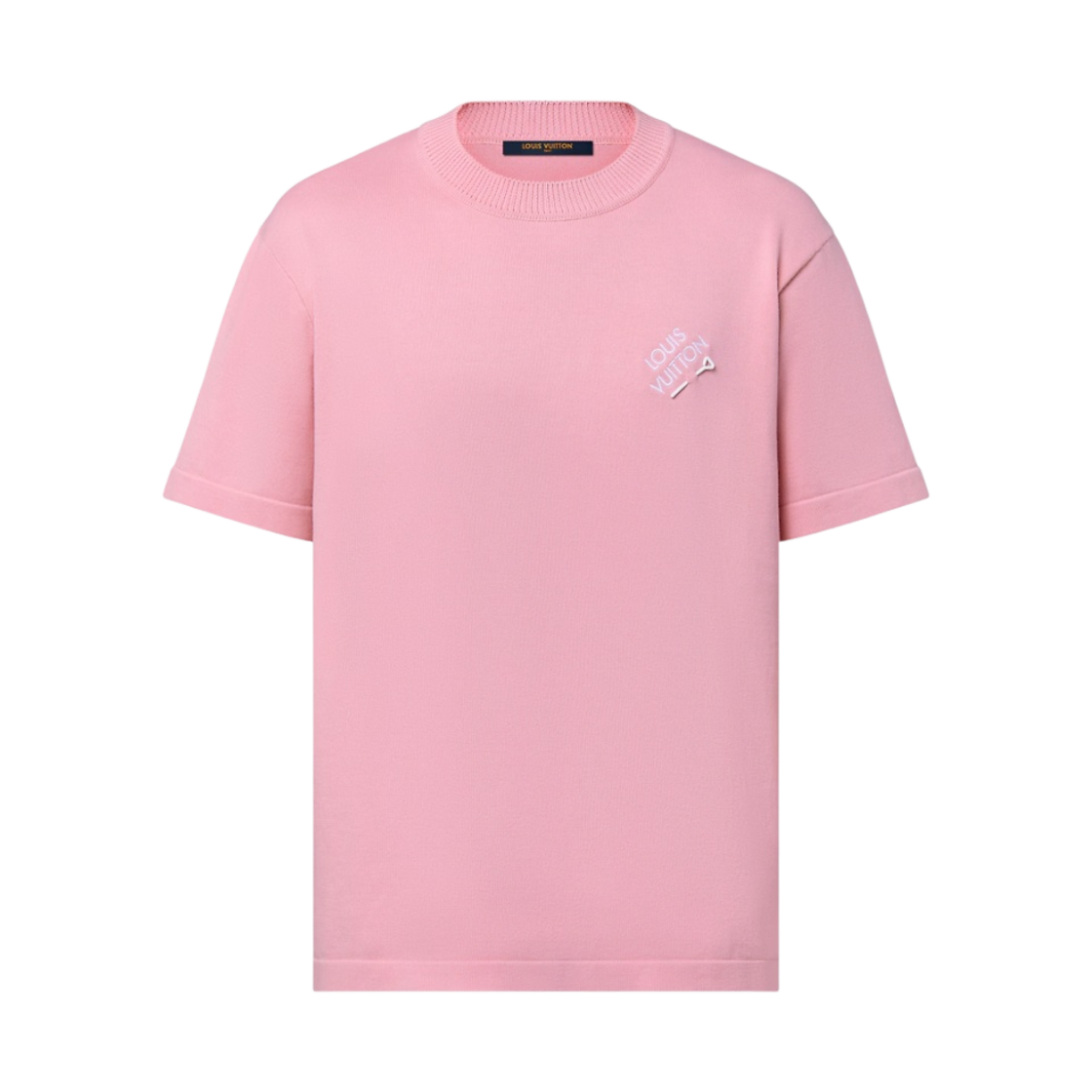 루이비통 엠브로이더드 시그니처 쇼트 슬리브드 코튼 크루넥 코랄 블러시