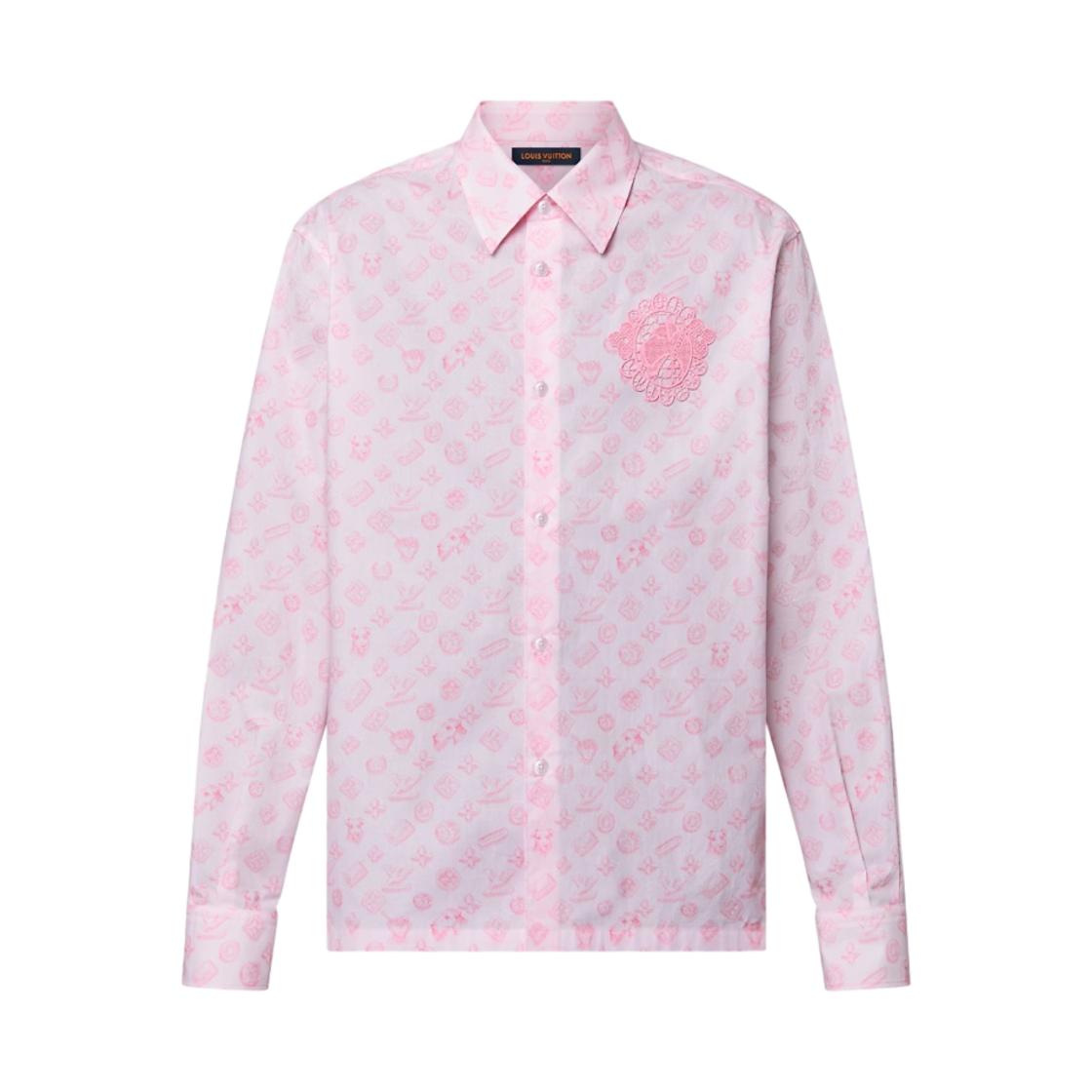 루이비통 모노그램 프린티드 롱 슬리브드 코튼 셔츠 코랄 블러시