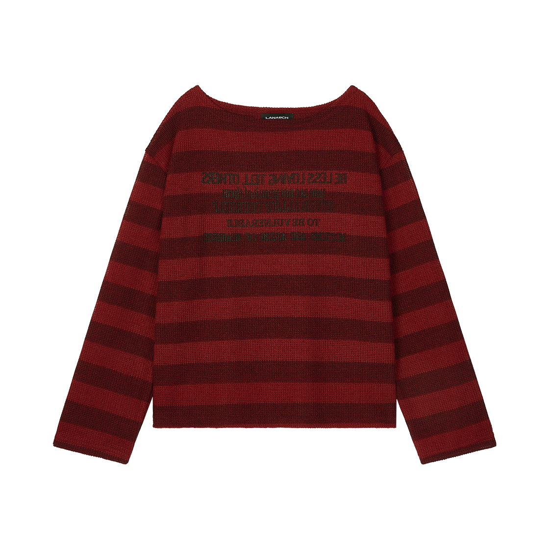 랜 아카이브 0058 레터링 스트라이프 니트 - 레드