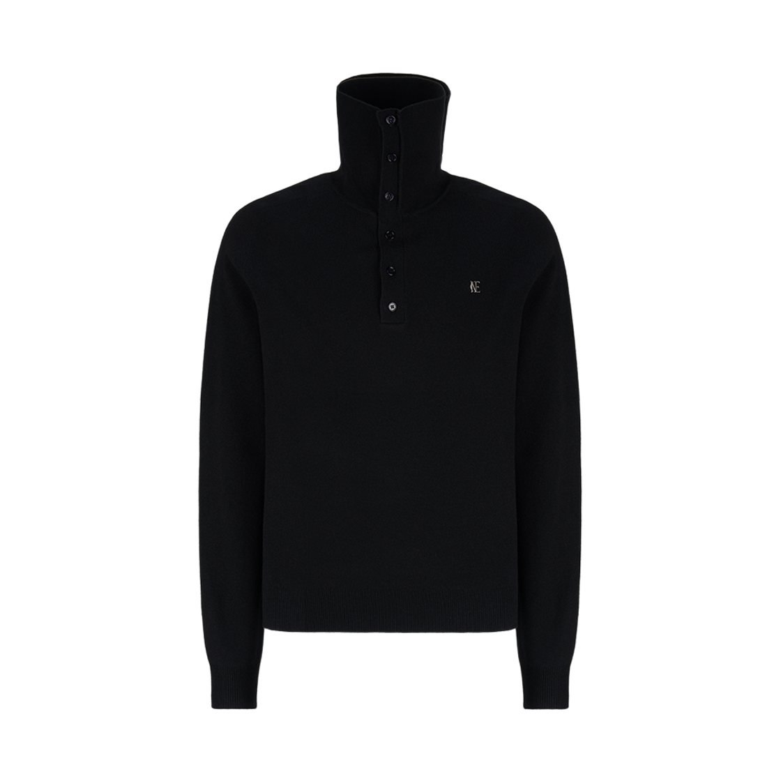 니티드 하프 폴라 롱 슬리브 니트 블랙