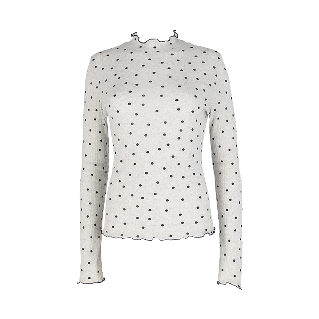 사유 도트 슬림핏 터틀넥 티 멜란지 화이트