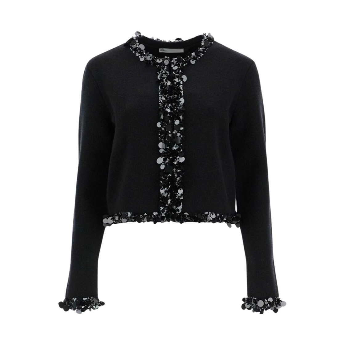 (W) 토리버치 엠벨리시드 크롭 가디건 블랙