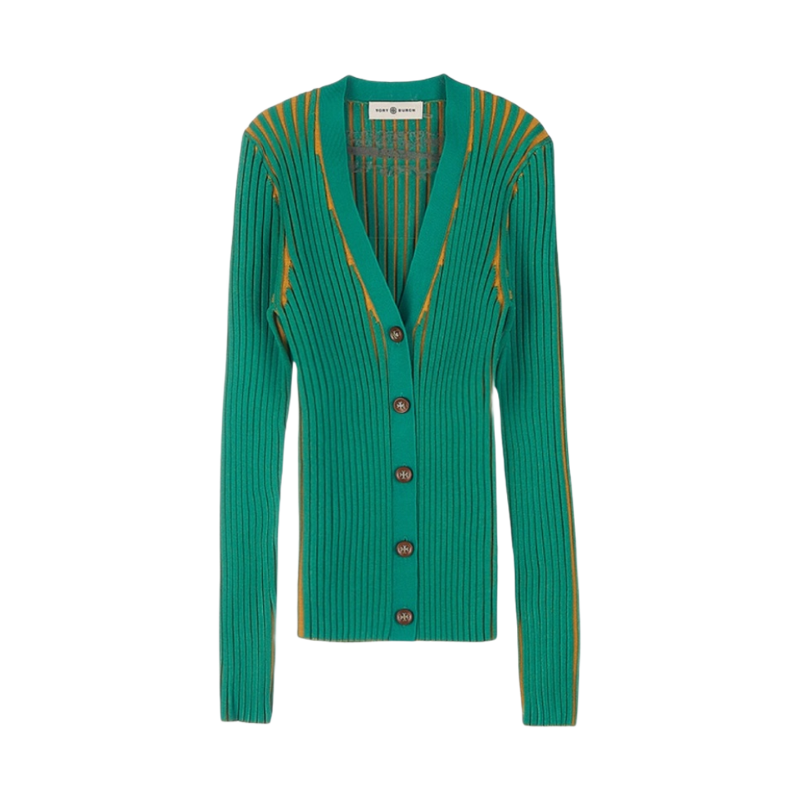 (W) 토리버치 투톤 스트레치 가디건 라디언트 그린 허니넛