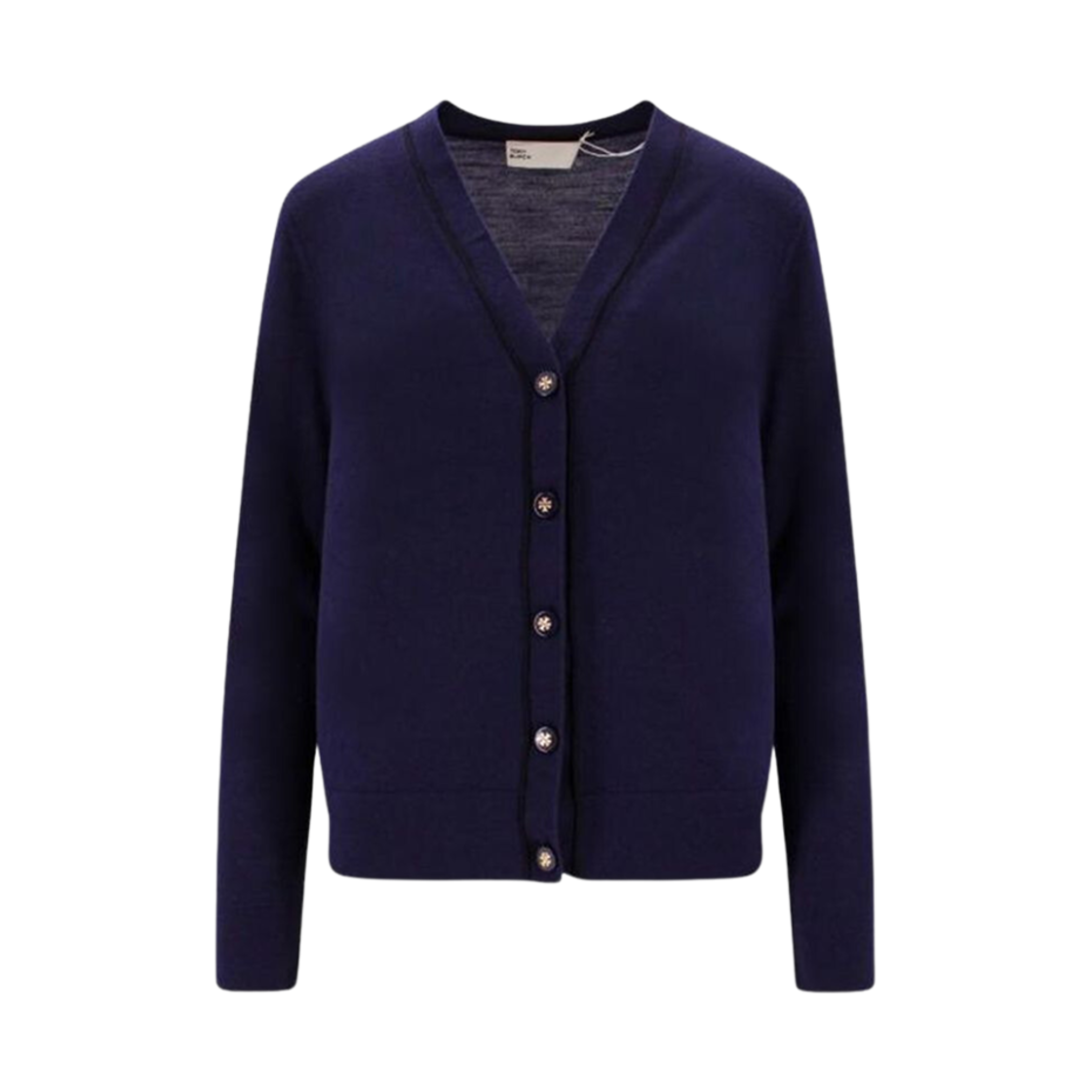 (W) 토리버치 리브드 니트 버튼 업 가디건 블랙