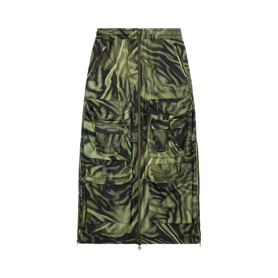 (W) 디젤 O-미르토우 롱 카고 스커트 제브라 카모 프린트 그린 블랙