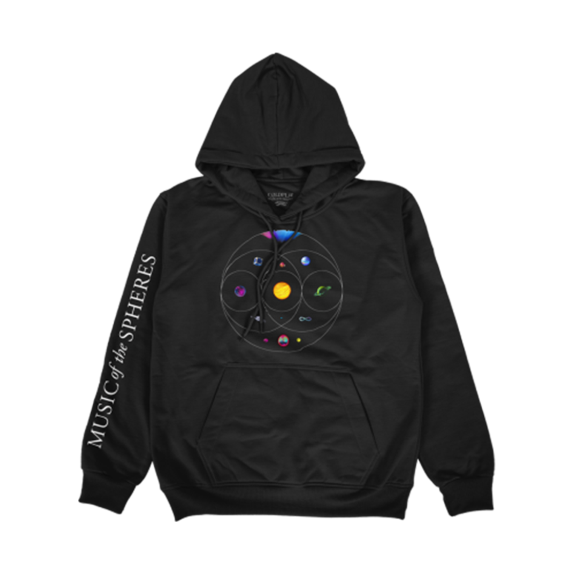 콜드플레이 뮤직 오브 더 스피어스 월드 투어 모츠 후드 티셔츠 블랙