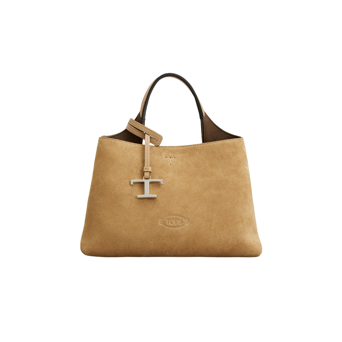 토즈 T 로고 스웨이드 미니 토트백 브라운