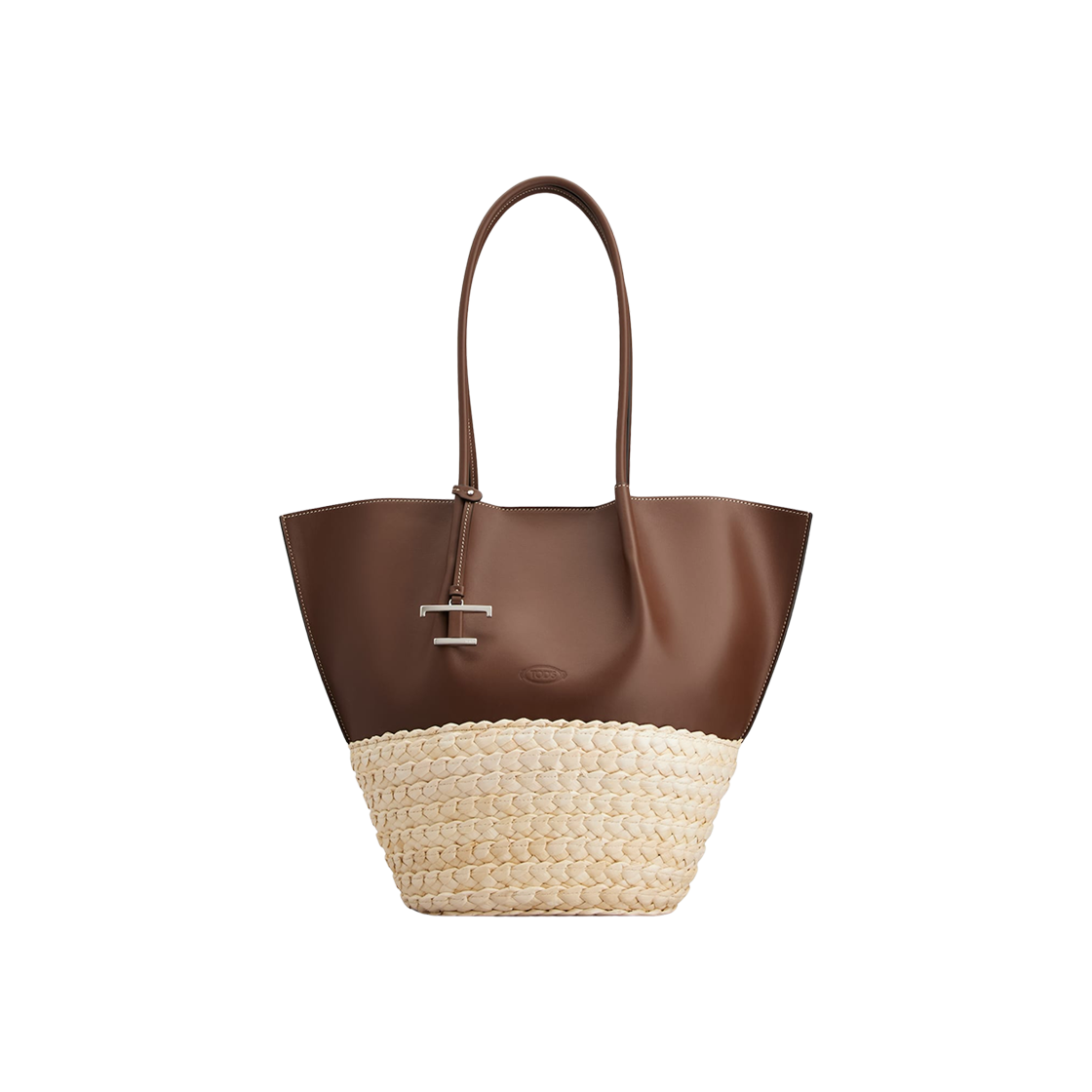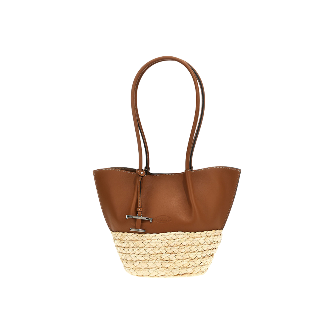 토즈 스트로우 레더 미디움 쇼핑백 브라운 내츄럴