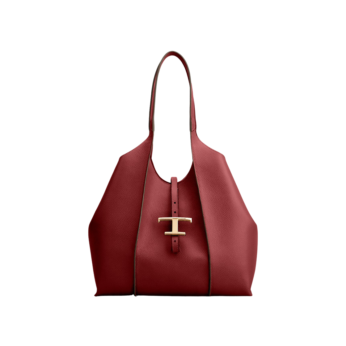 토즈 레더 스몰 T 타임리스 쇼핑백 레드