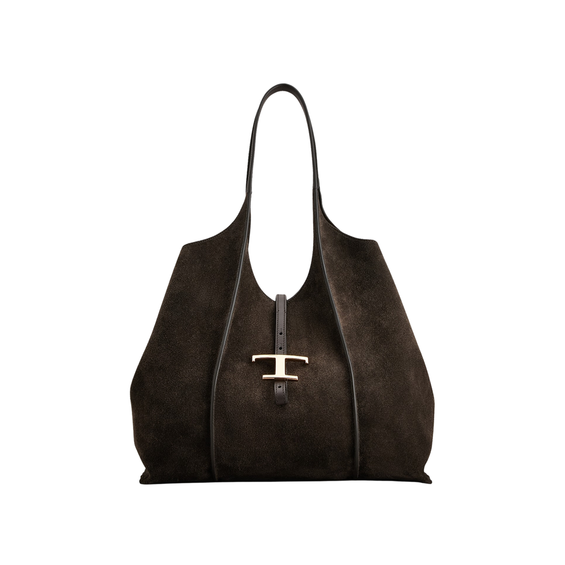 토즈 스웨이드 미디움 T 타임리스 쇼핑백 브라운