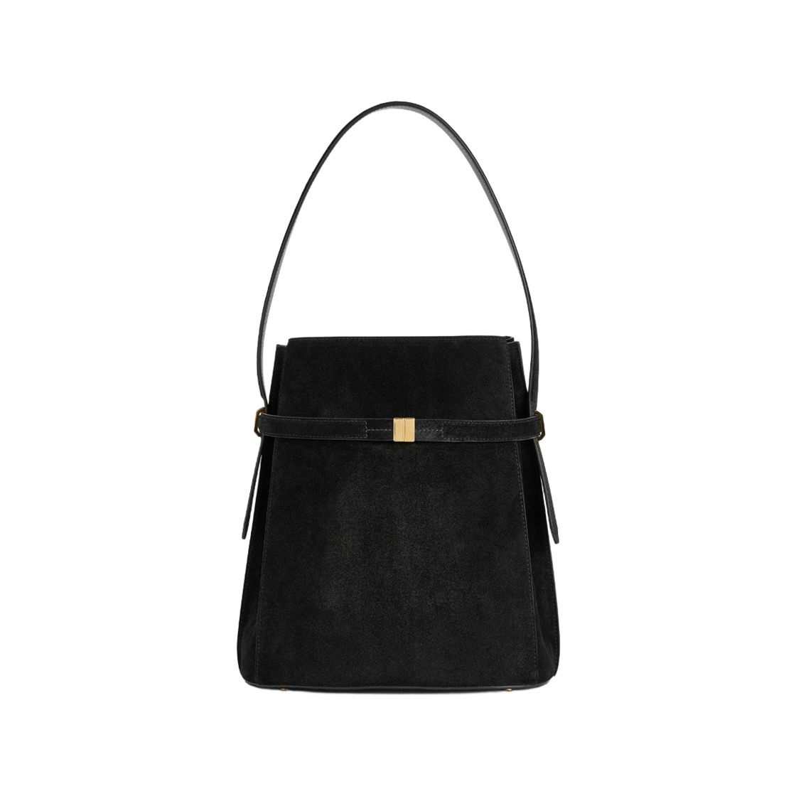 토템 벨티드 크로커 엠보스드 버킷백 블랙