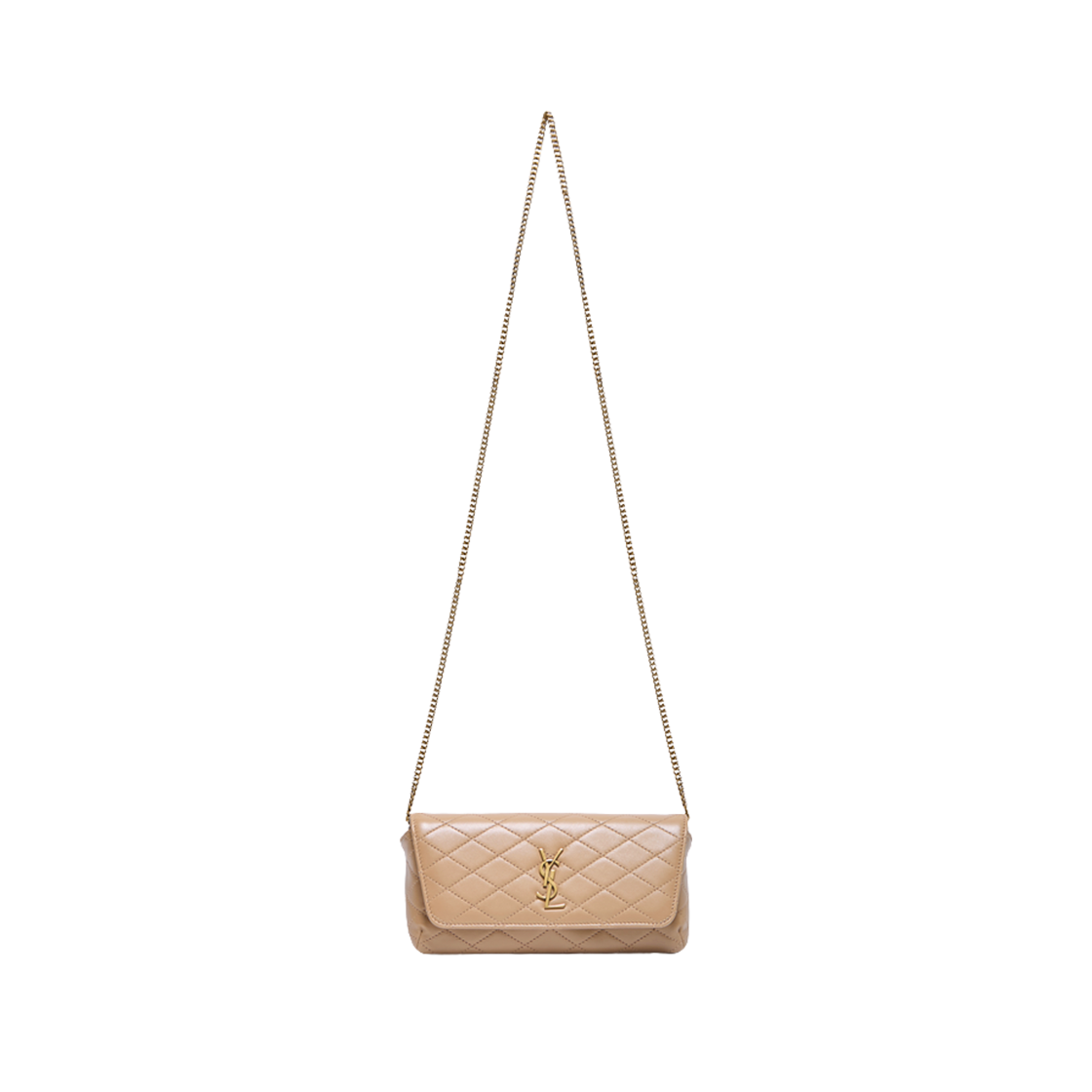 생로랑 퀼티드 램스킨 가비 체인 폰 홀더 다크 토피