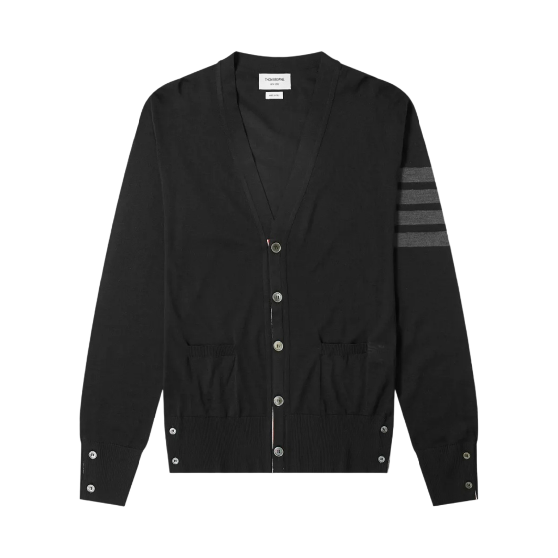 (W) 톰브라운 파인 메리노 울 밀라노 스티치 사선 클래식 브이넥 가디건 미디움 그레이