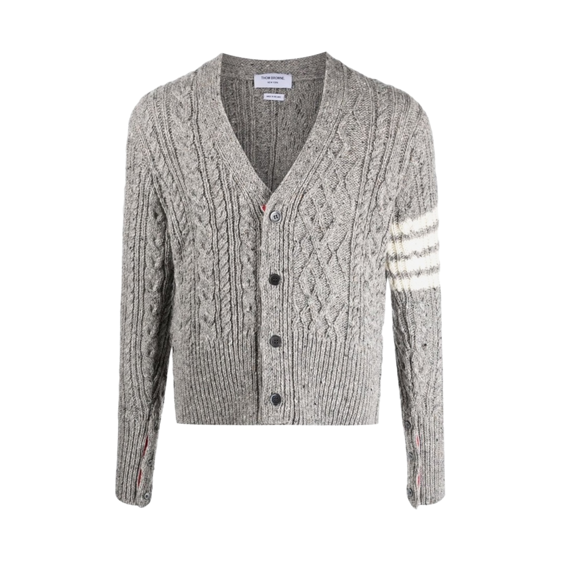 톰브라운 도네갈 사선 스트라이프 트위스트 케이블 클래식 브이넥 가디건 라이트 그레이