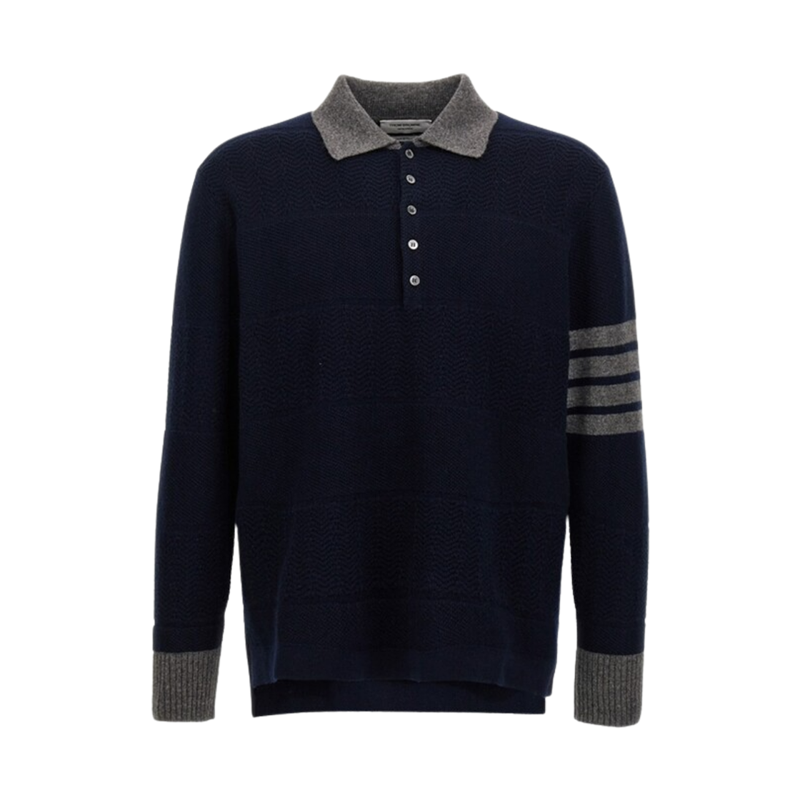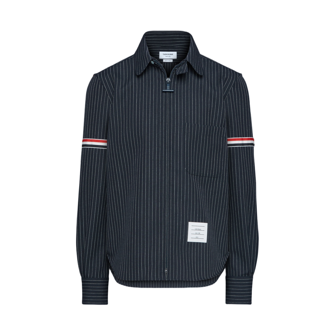 톰브라운 핀스트라이프 하이 트위스트 울 집업 셔츠 네이비