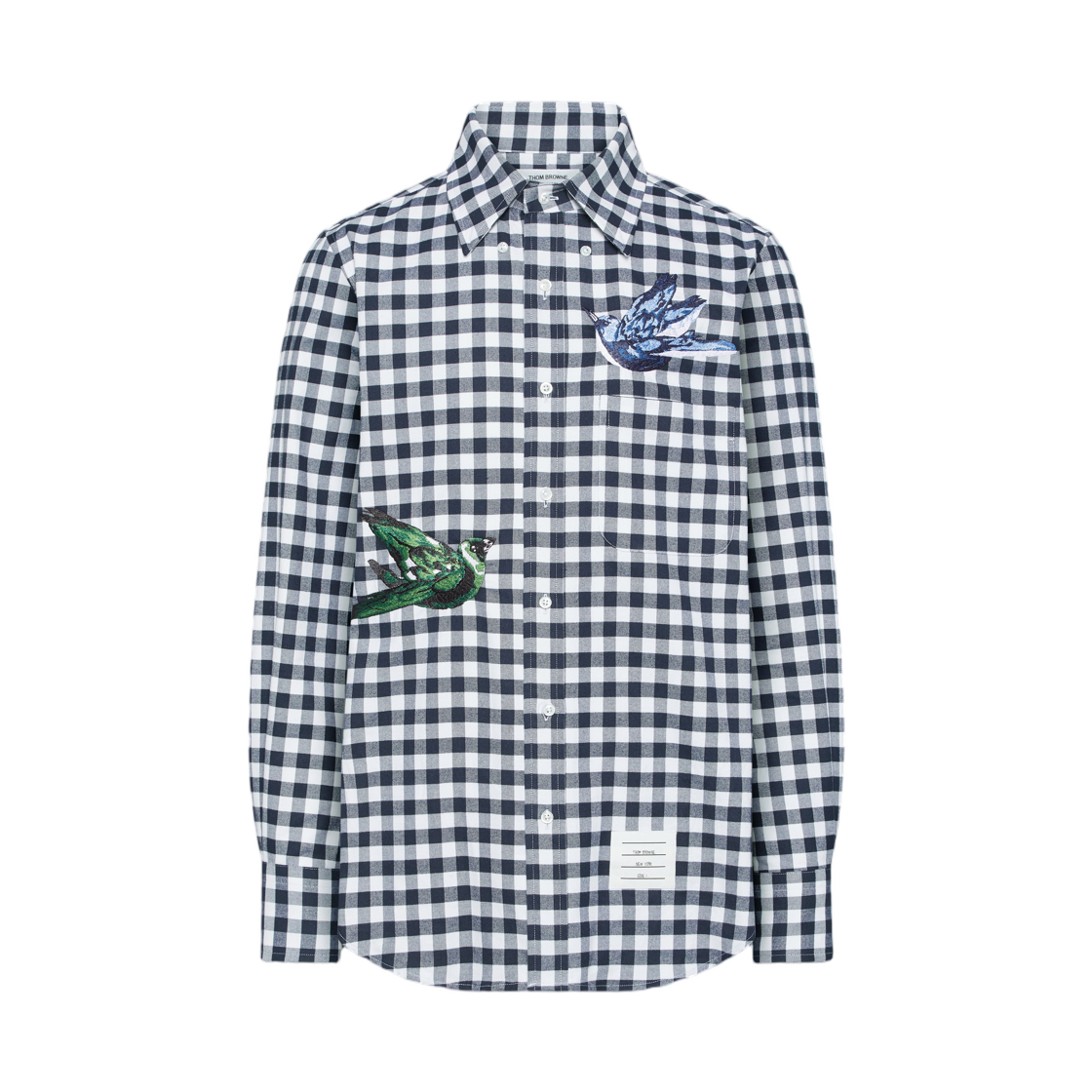 톰브라운 깅엄 체크 플란넬 사틴 스티치 버드 셔츠 네이비