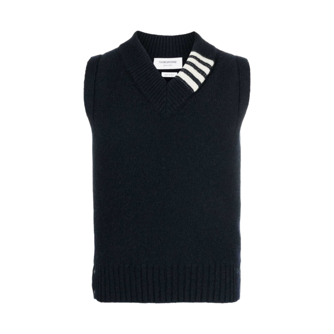 톰브라운 리버스 저지 스티치 도네갈 사선 브이넥 베스트 네이비