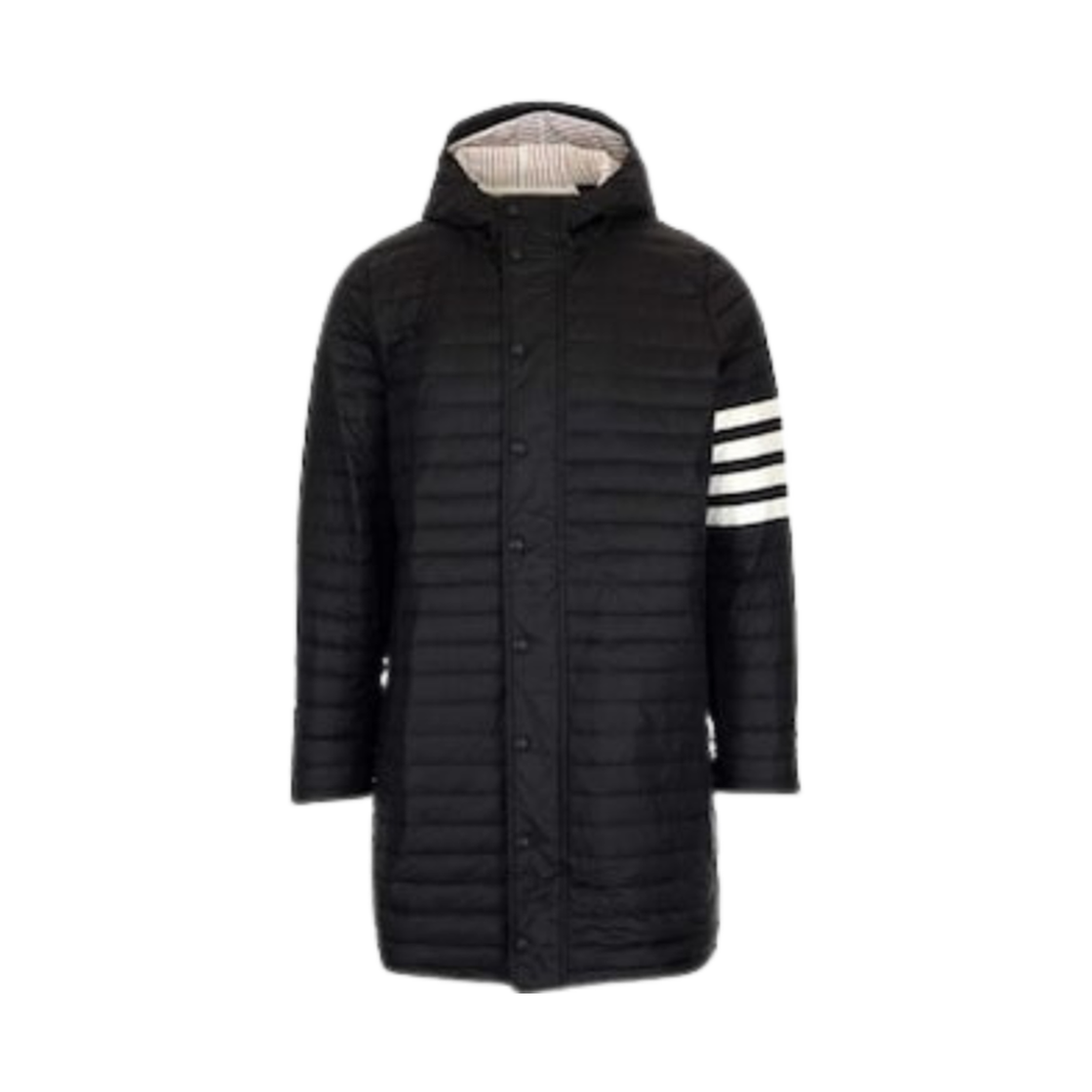 톰브라운 매트 나일론 사선 다운 필드 스냅 프론트 코트 블랙