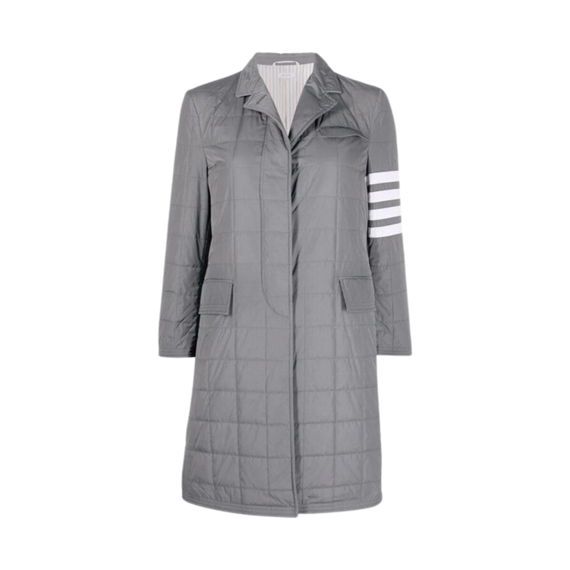 (W) 톰브라운 인타르시아 사선 폴리 트윌 퀼티드 테크 다운 체스터필드 코트 미디움 그레이