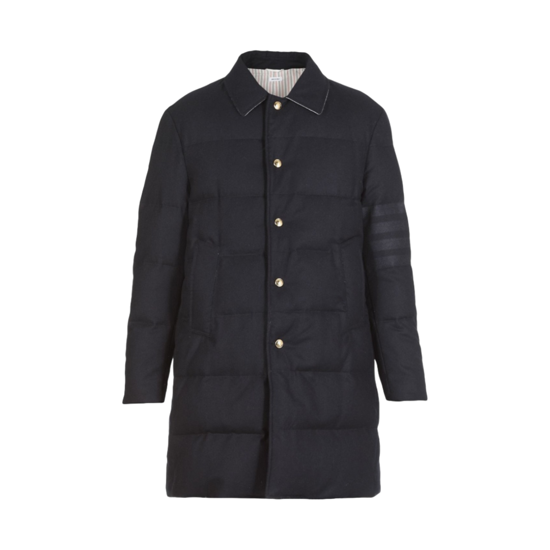 톰브라운 토날 사선 스트라이프 플란넬 울 다운 코트 네이비